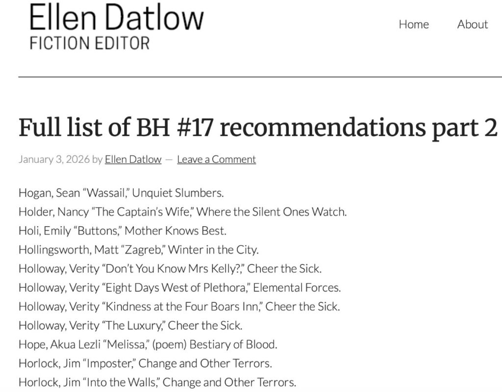 I’ll be teaching at Anglia Ruskin University again this spring. Just a couple of classes on weird short fiction. If you’d like to see my teaching videos, they’re all on my Patreon, which you can join for a mere £1 a month. Patreon keeps me afloat these days, so every sub is a bright spark.